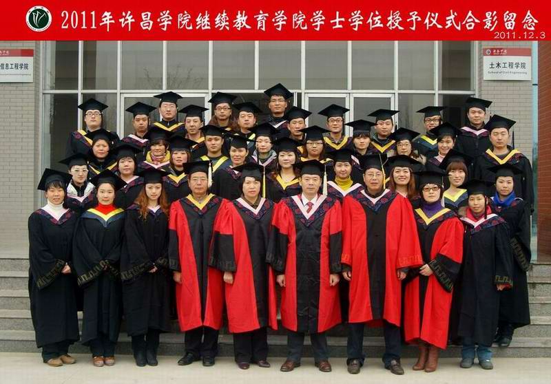 公司党总支书记王中立宣读了《关于授予王培丽等44名2011届成人高等教育本科毕业生学士学位的决定》(院政教〔2011〕8号),宣布了学士学位获得者名单。与会领导为学位获得者颁发证书并扶正流苏。会后,身着学士服的学员们在太阳成集团tyc122ccvip楼前合影留念。